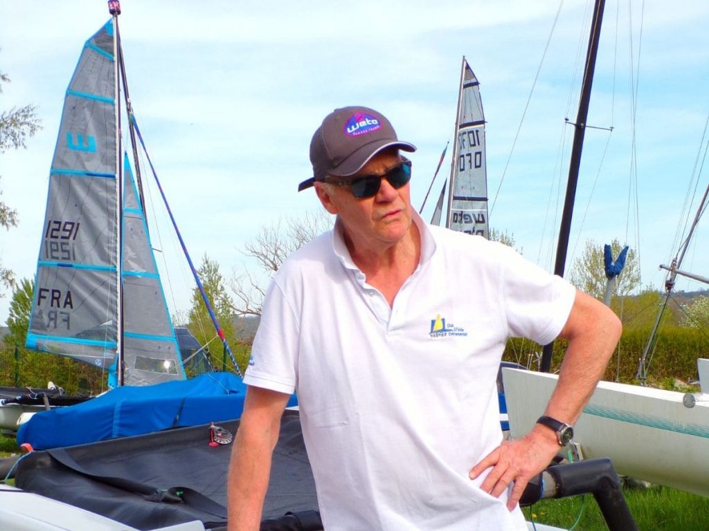 Désormais habituée du club, je prends mes aises et salut les bénévoles. Moins nombreux, cette année, tous les régatiers sont réunis côté CVML. Au petit matin, le vent attendu est médium et le soleil est aussi de la partie. C’est donc un samedi printanier qui s’annonce. Tandis que chacun prépare son embarcation, je me promène dans le parking. Finalement, l’avantage de ne régater que le deuxième jour, c’est que j’ai le temps d’échanger avec les membres du club. Je retrouve Claire et Sylvain qui naviguent en RS 500 et Christian Chapelin qui me présente son Weta.